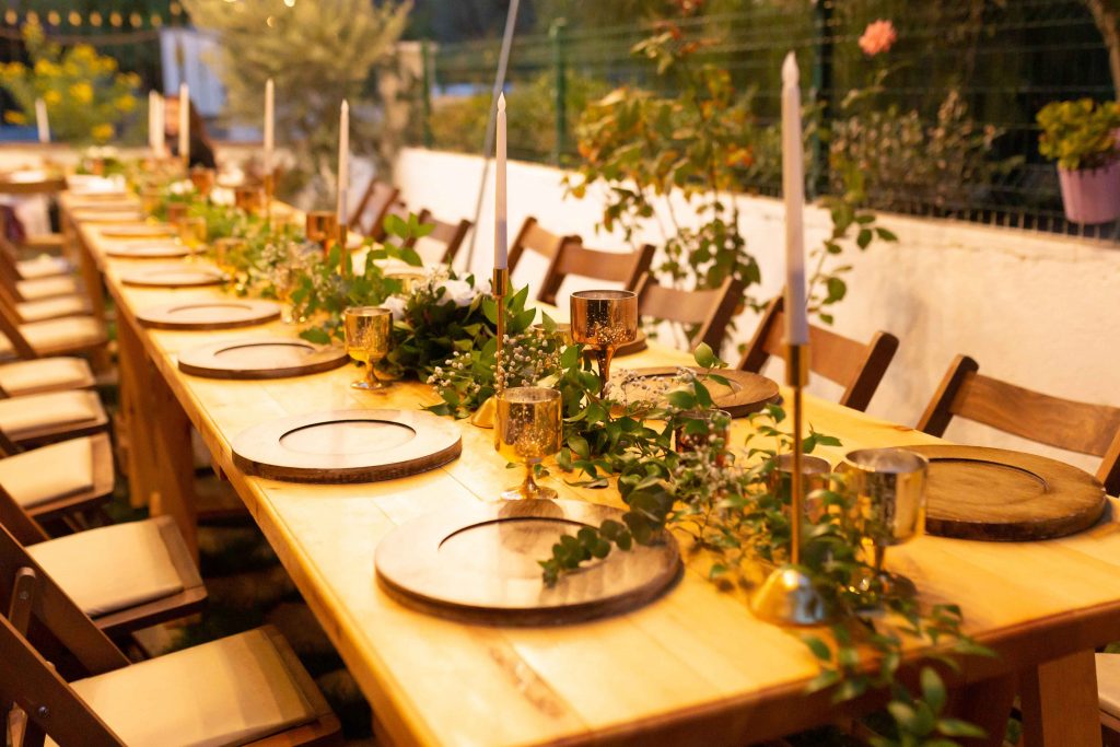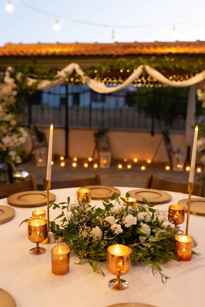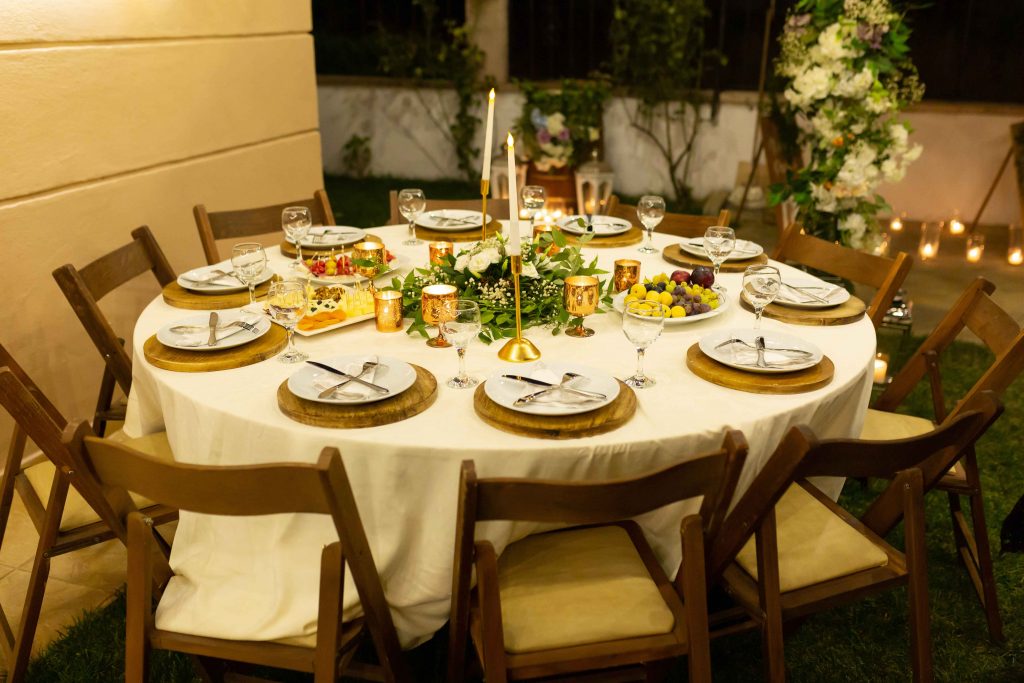 Masalarda ise beyaz disbud çiçeklerinin, turuncu güllerin ve cipsoların bulunduğu samimi bir ortam hazırladık. Masa mumluklarımız, hasır suplalarının, kumaş peçete havluların kusursuz görüntüsüyle görsel bir şölen yakaladık.