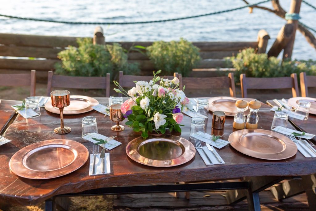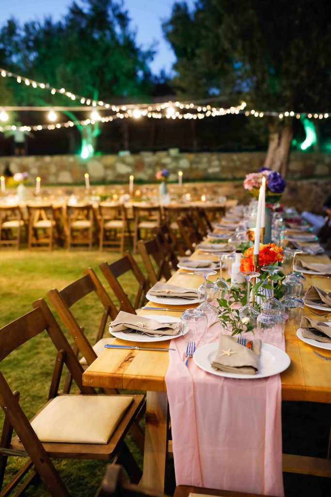 Sevgili çiftimiz Ceyda ve Abdullah ile Kıvrak Otel’de gerçekleştirdiğimiz nişan organizasyonunda ahşap masalarımız ve sandalyelerimizi kullandık. Çiftimiz ile planladığımız nişan konseptinde Tag üzerine vizon renkte kumaş örtü, panpaslar, turuncu ile yeşil çiçekler kullandık.